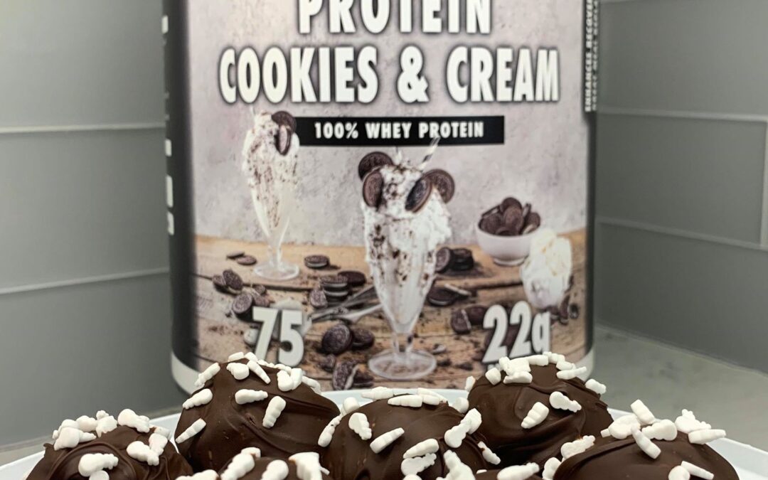 -Pour Oreo crumbs into a bowl and mix in protein powder
